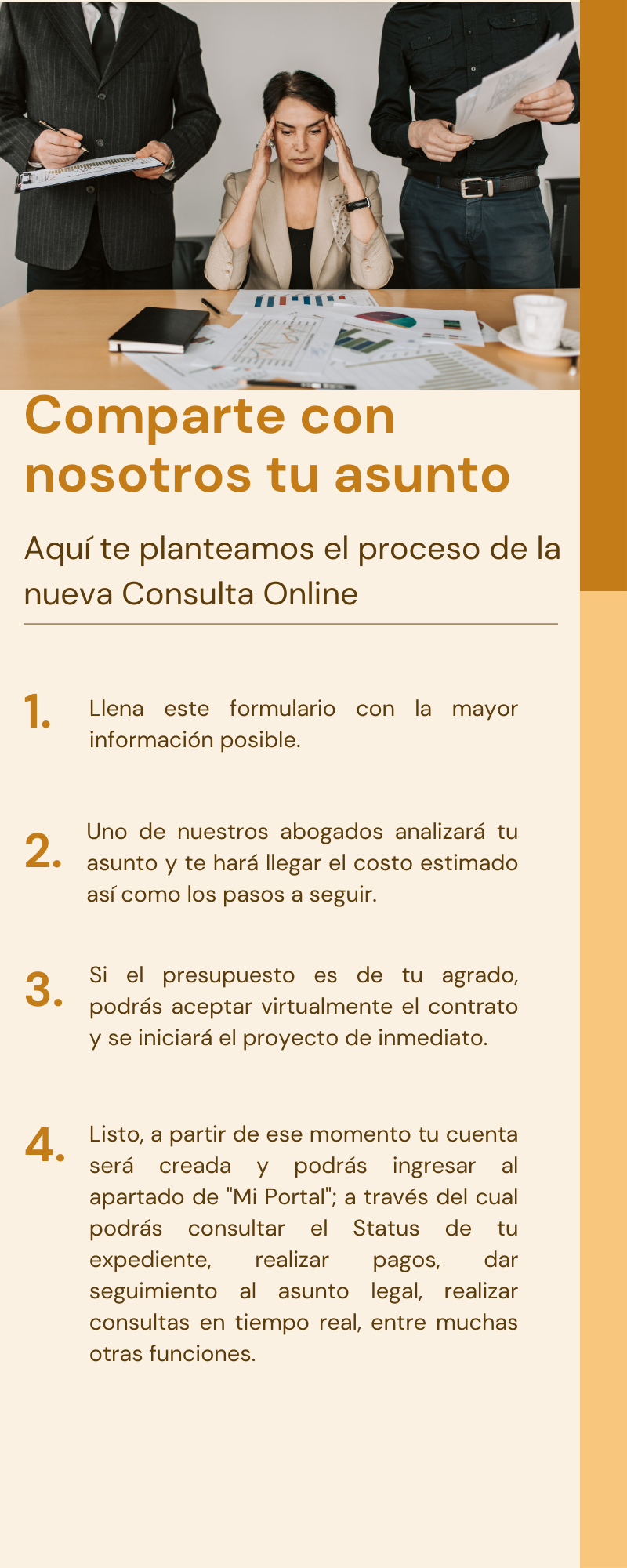En esta etapa inicial escuchamos tus inquietudes, checamos tus documentos, y visualizamos una solución.